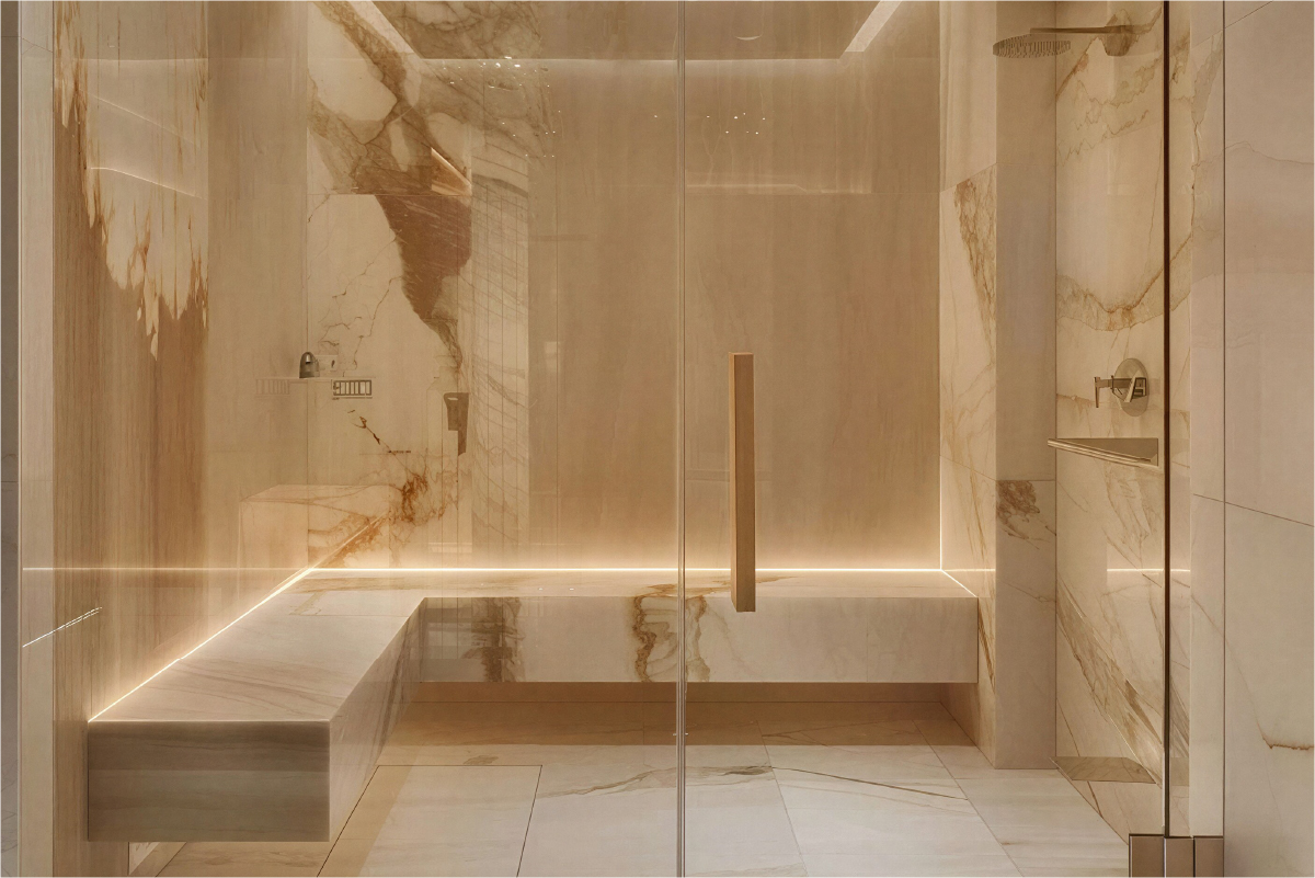 The 180m² two-bedroom residences offer exceptional internal space rarely found in comparable developments.